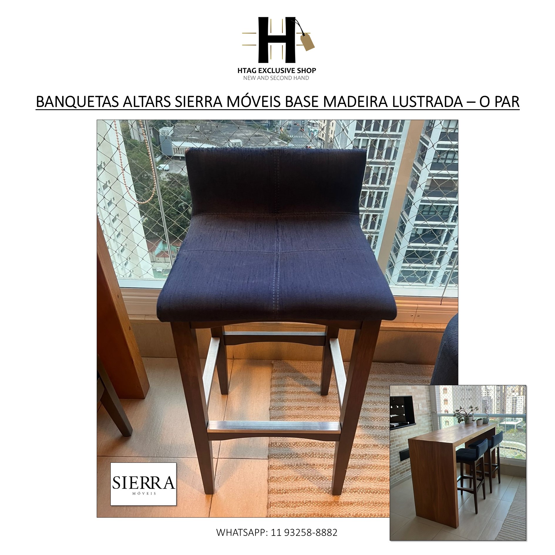 BANQUETAS ALTAS SIERRA MÓVEIS BASE MADEIRA LUSTRADA – O PAR