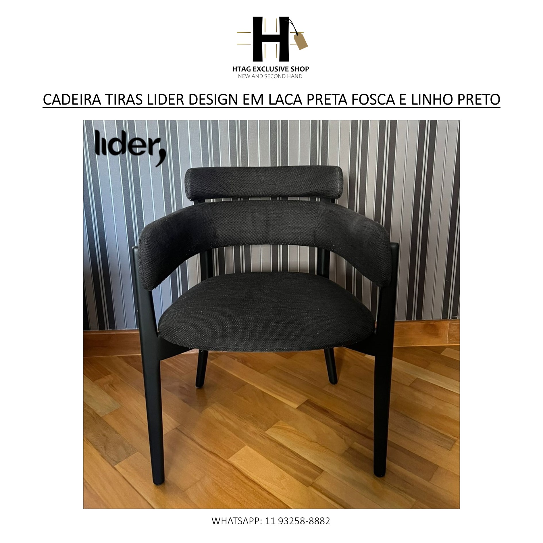 CADEIRA TIRAS LÍDER DESIGN EM LACA PRETA FOSCA E LINHO PRETO