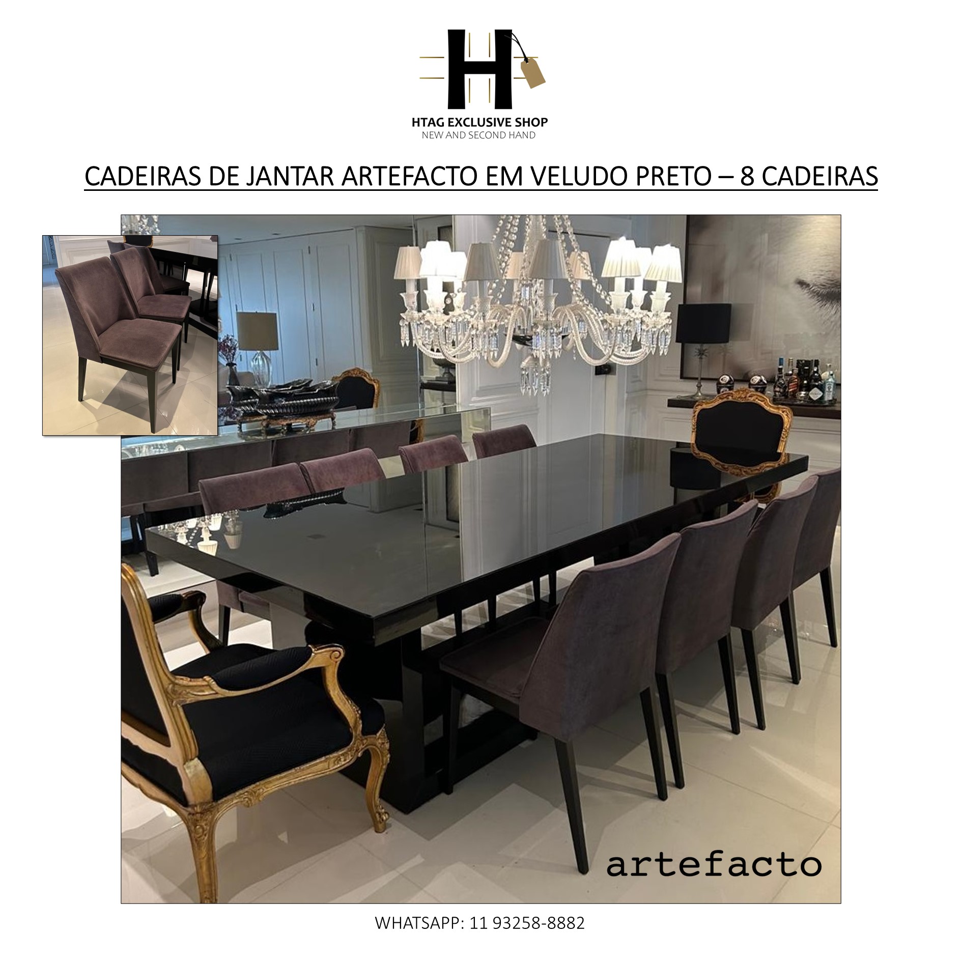 CADEIRAS DE JANTAR ARTEFACTO EM VELUDO PRETO – 8 CADEIRAS