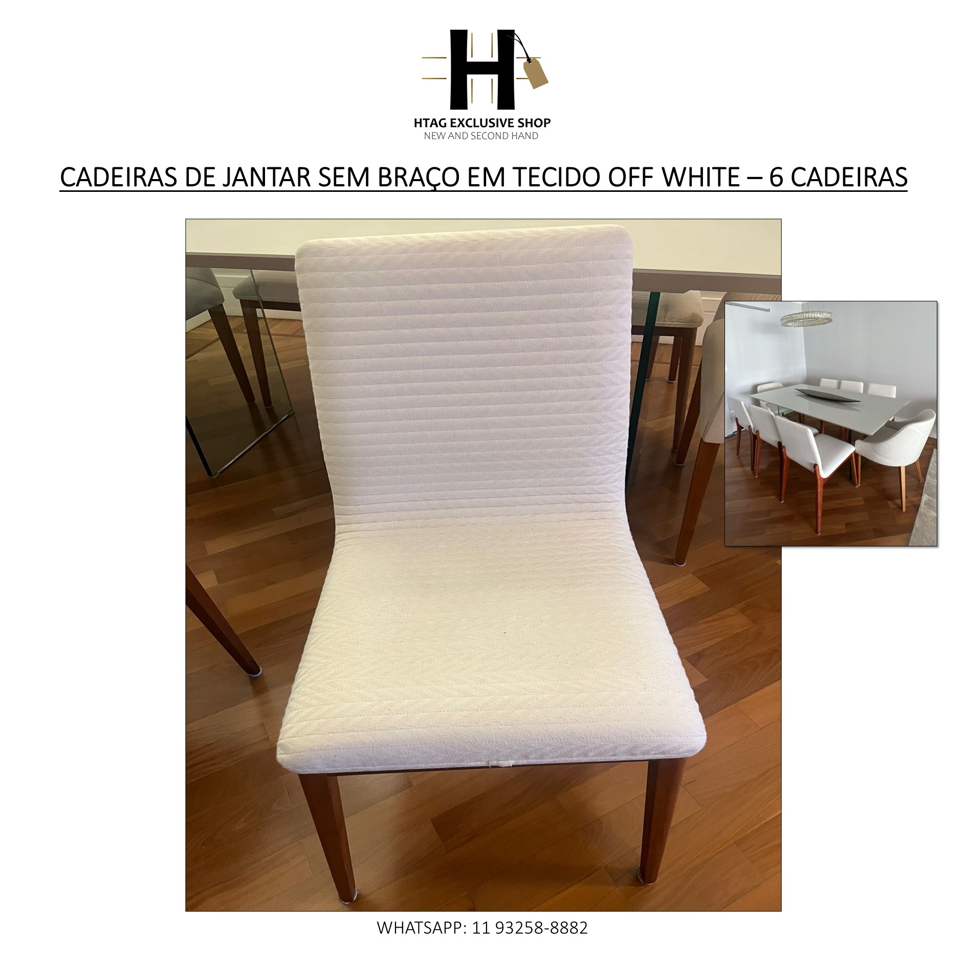 CADEIRAS DE JANTAR SEM BRAÇO EM TECIDO OFF WHITE – 6 CADEIRAS