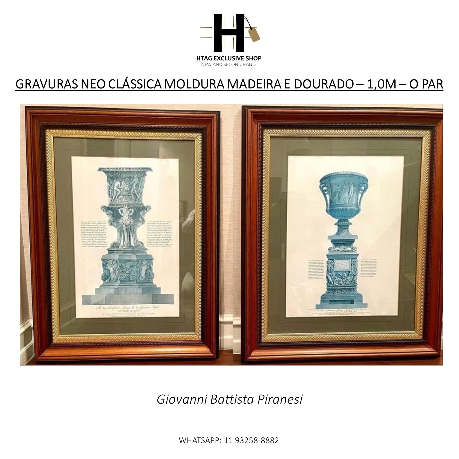 GRAVURAS IMPRESSÃO NEO CLÁSSICA AZUL COM MOLDURA MADEIRA E DOURADO – 1,0 M (A) – O PAR