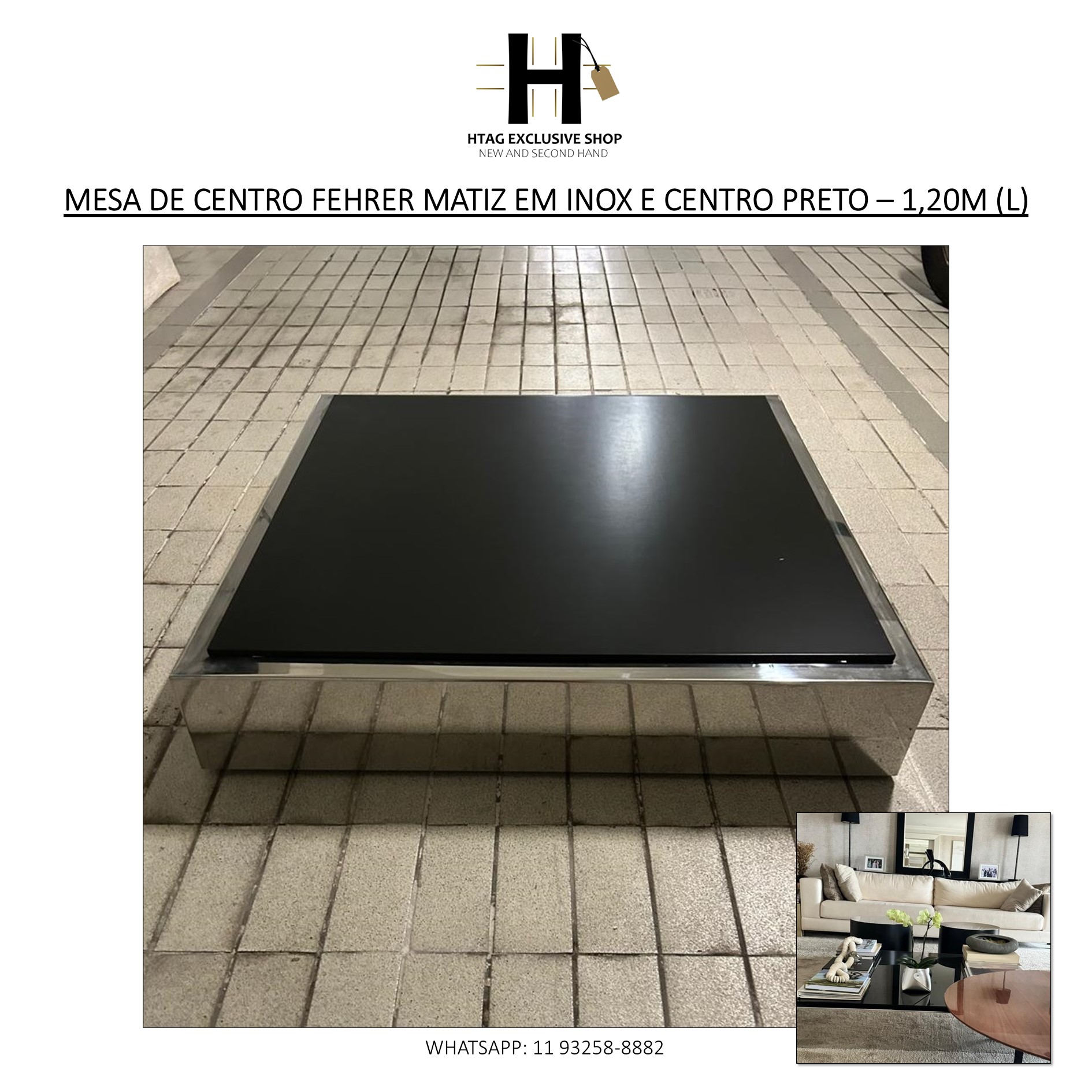 MESA DE CENTRO FEHRER MATIZ LATERAIS DE INOX E CENTRO EM INOX PRETO