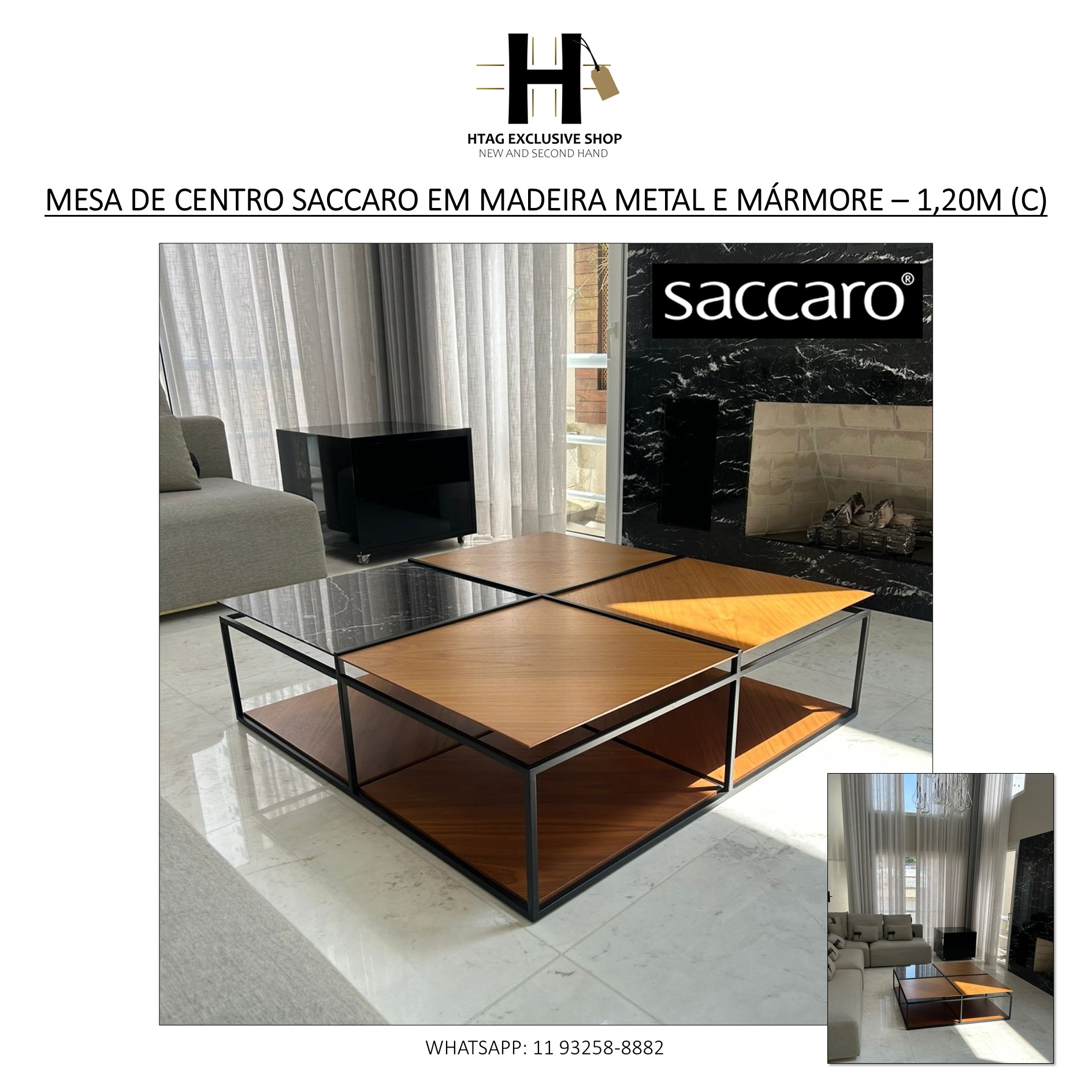 MESA DE CENTRO REVOAR SACCARO EM MADEIRA METAL E MÁRMORE – 1,20M (C)