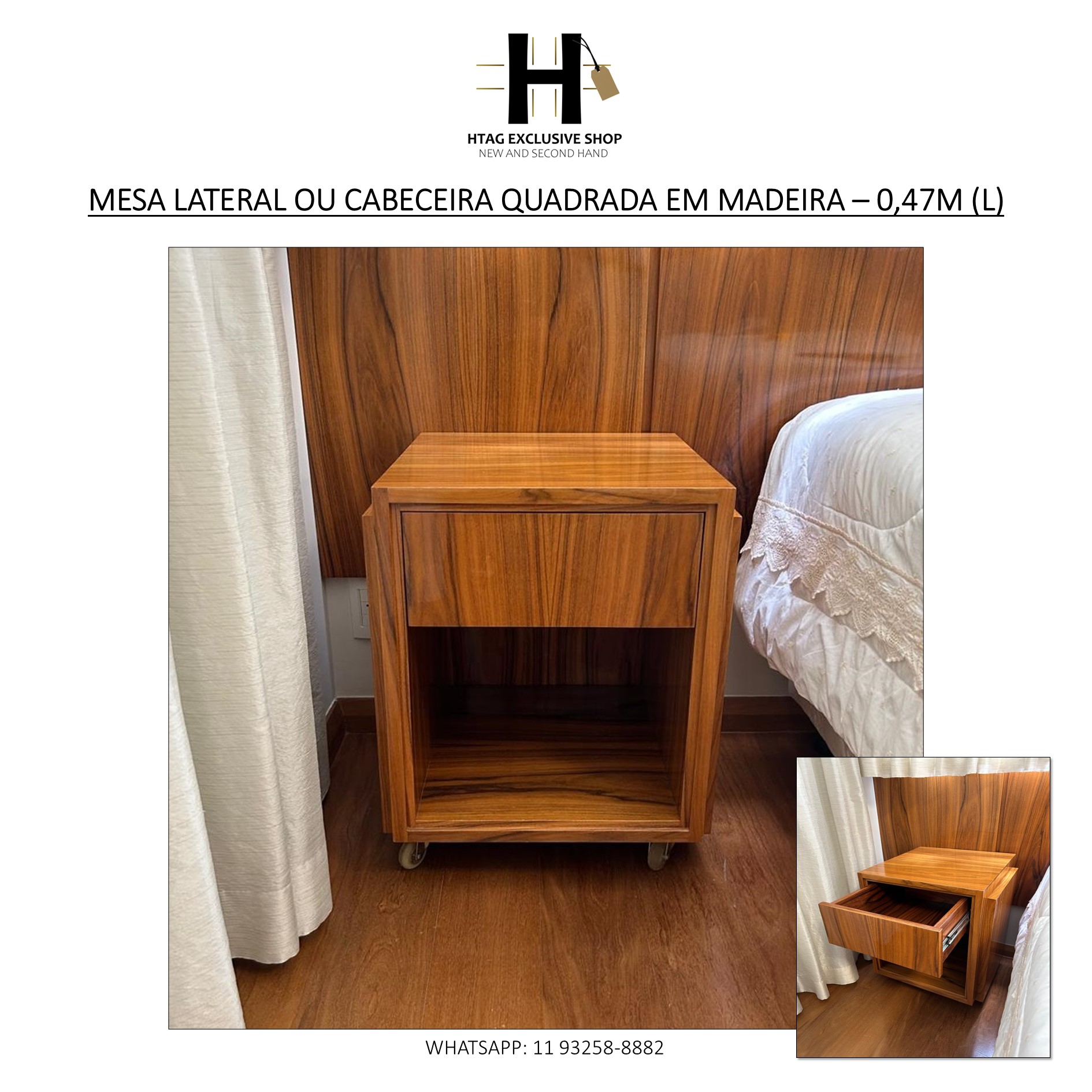 MESA LATERAL OU CABECEIRA QUADRADA EM MADEIRA – 0,47M (L)