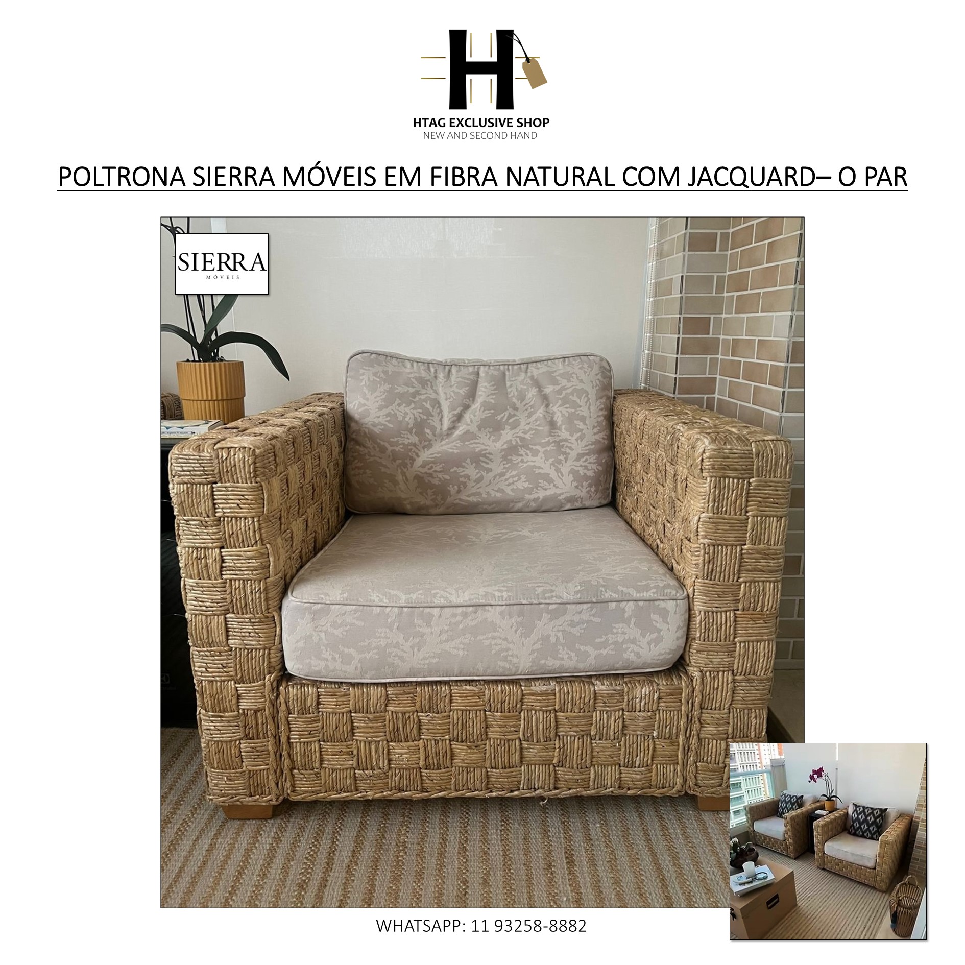 POLTRONA SIERRA MÓVEIS BASE EM FIBRA NATURAL ESTOFADA EM JACQUARD OFF WHITE – O PAR