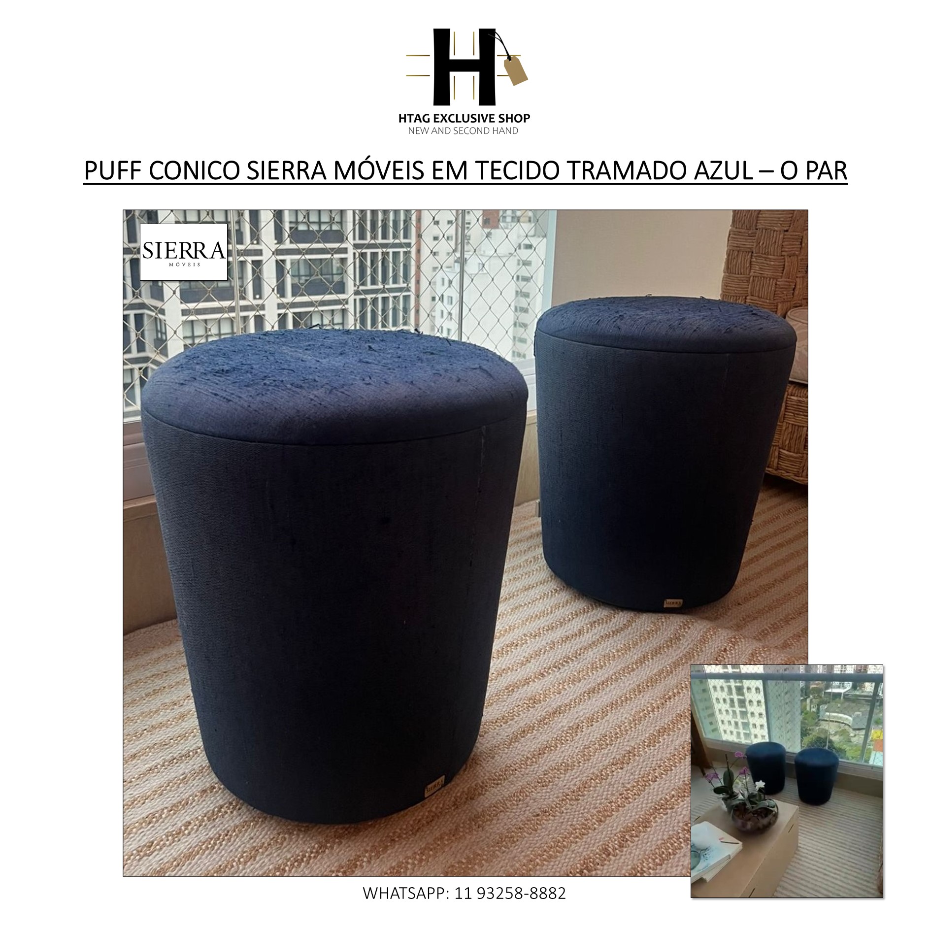 PUFF CÔNICO SIERRA MÓVEIS EM TECIDO TRAMADO AZUL – O PAR