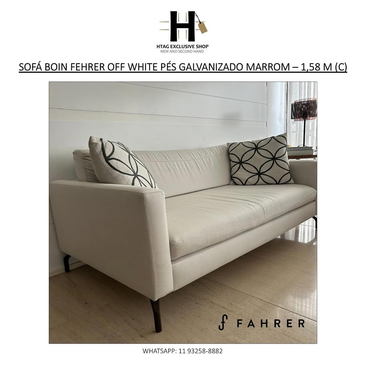 SOFÁ BOIN FEHRER OFF WHITE PÉS EM FERRO GALVANIZADO MARROM – 1,58 M (C)